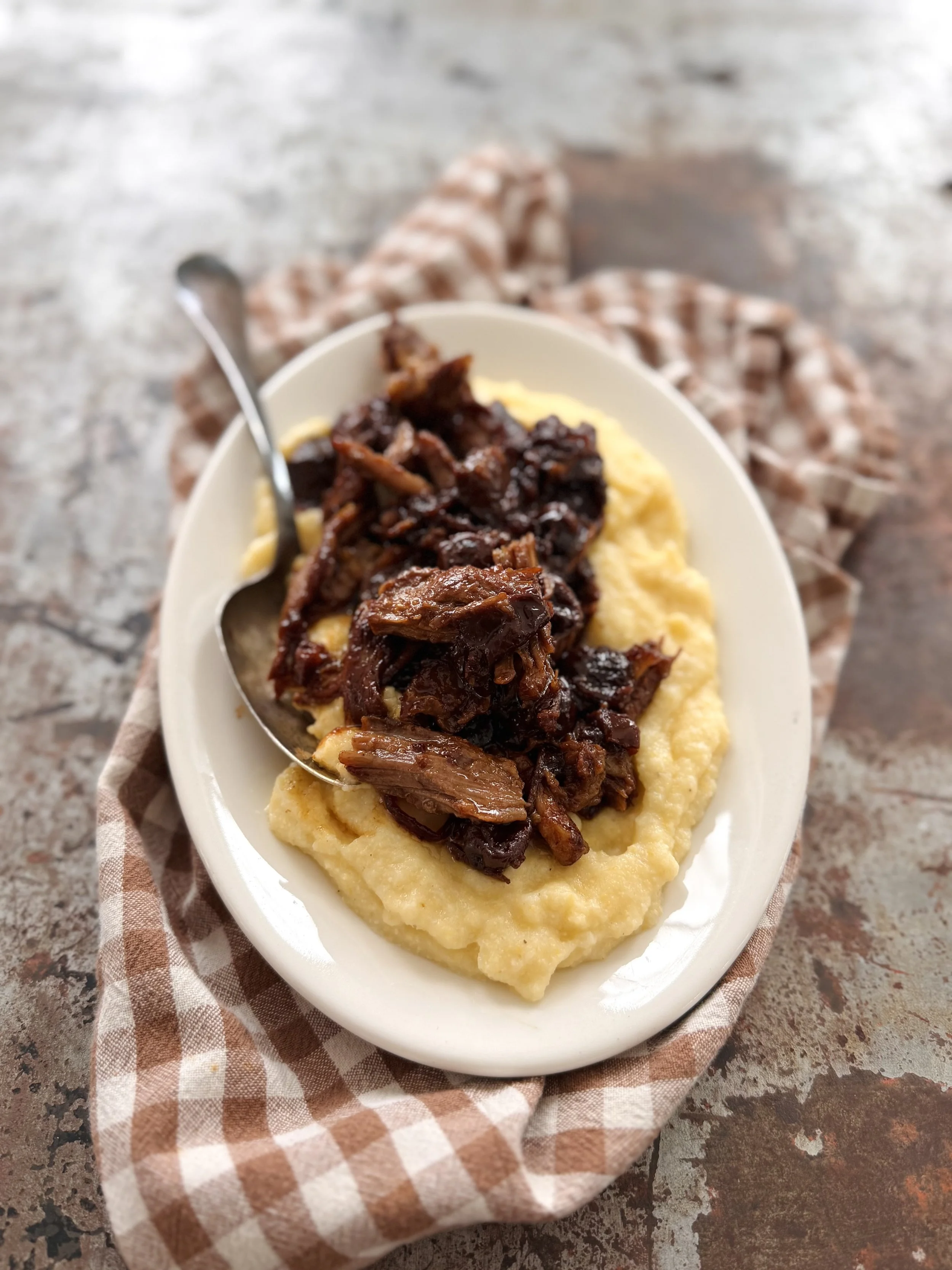 This gorgeous dish takes so little effort. Serve with creamy polenta or mashed potatoes. If you want the meat to be very shredded, let it cool completely and then use your hands instead of forks or tongs to break it into small pieces (it’s nice to wear a pair of disposable gloves for this job).