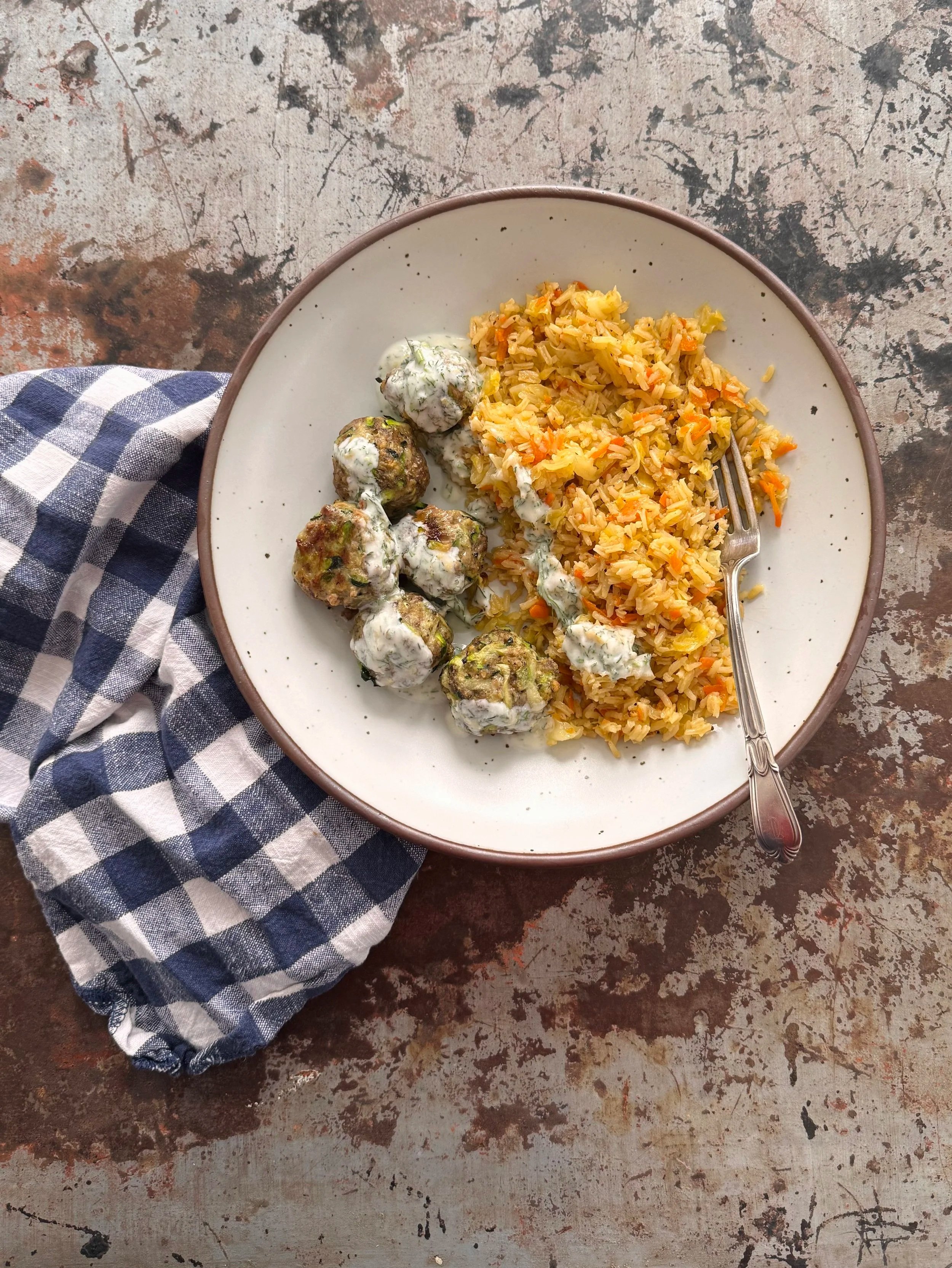 Beef + Zucchini Meatballs with Yogurt Sauce